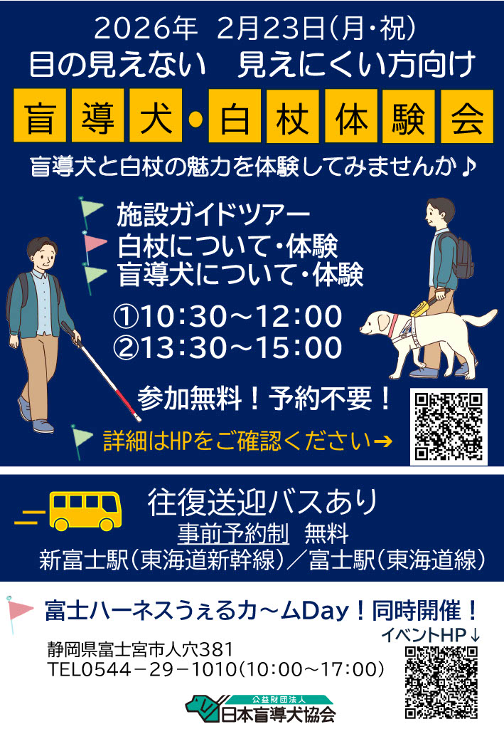 【富士ハーネス】2月23日 盲導犬・白杖体験会(富士山の日 特別イベント)