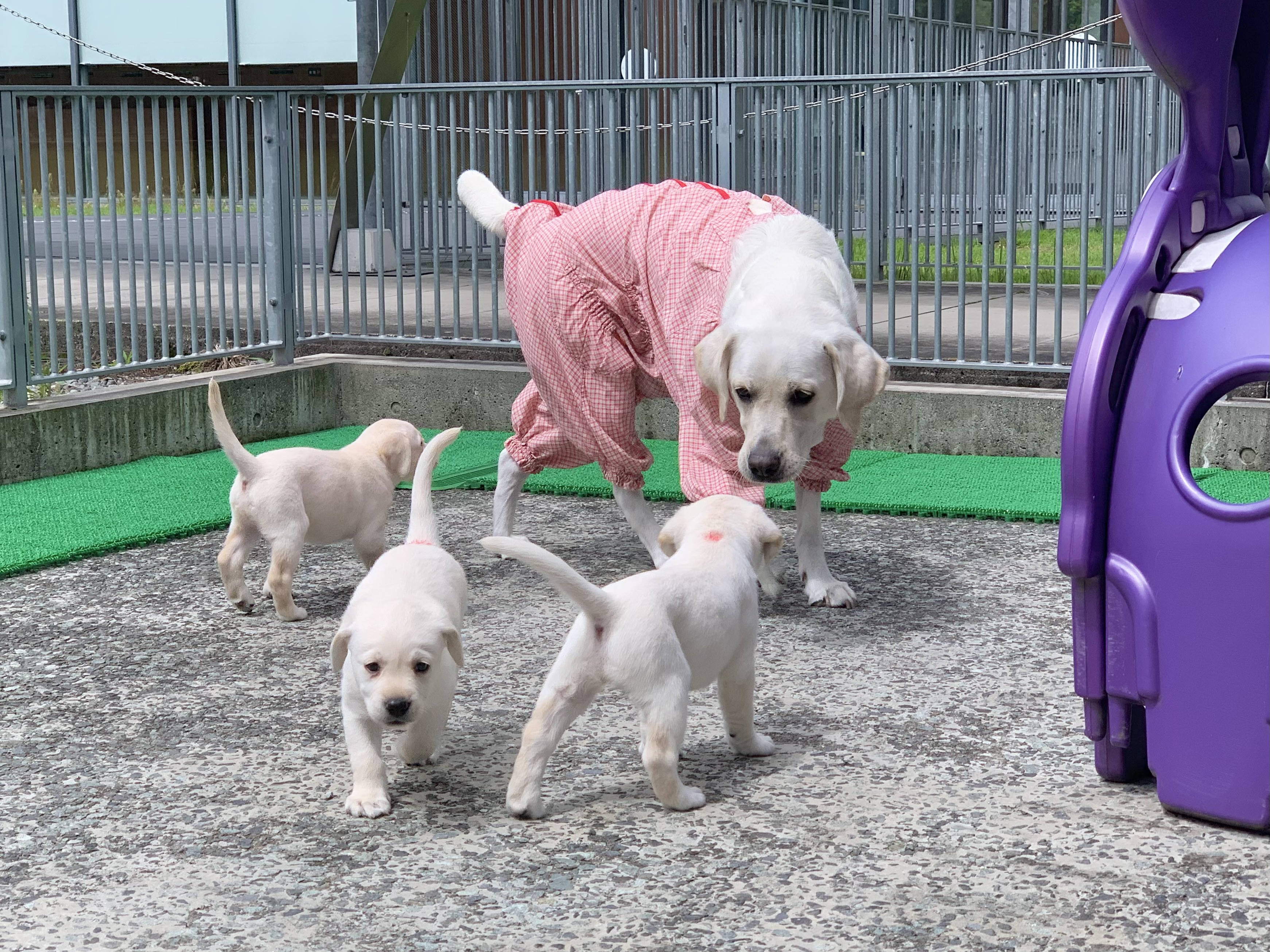子犬棟のすぐ隣(屋外)には、母犬と子犬が遊んだり経験ができる子犬運動場があります。