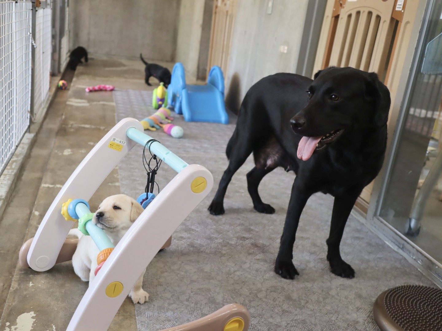 子犬たちは、生後2カ月までこの子犬棟で、母犬やきょうだい犬たちと一緒に過ごします。